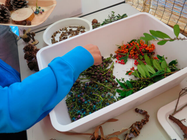 どんぐりや木の実など、いろんな自然の素材を集めておくのがおすすめです。