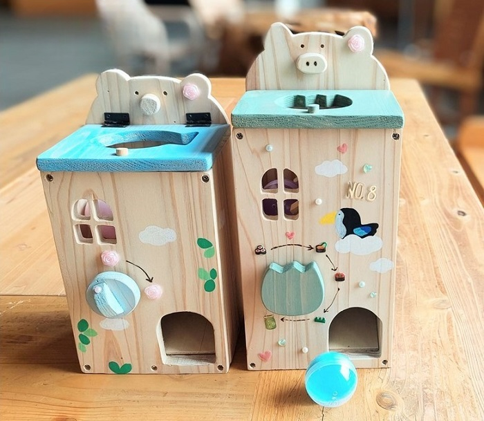 杉材を使った小さなガチャマシーン!