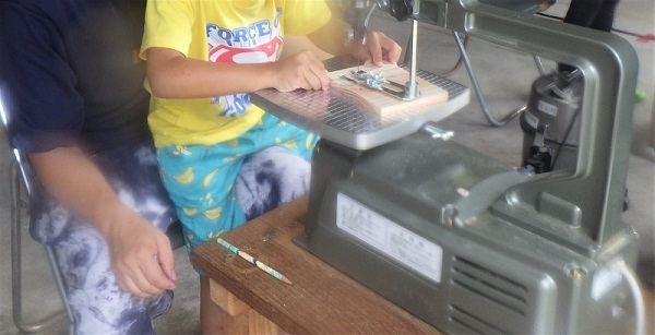 ※糸のこ盤を使うときは、先生や大人の人といっしょに、ゆっくり作業しようね。